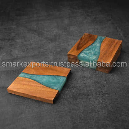 Trendy Handmade Resin Wood Coaster Set Round and Square Drink Mat Tea Coaster Cup Holder Dining Table Coffee Bar Home Decor