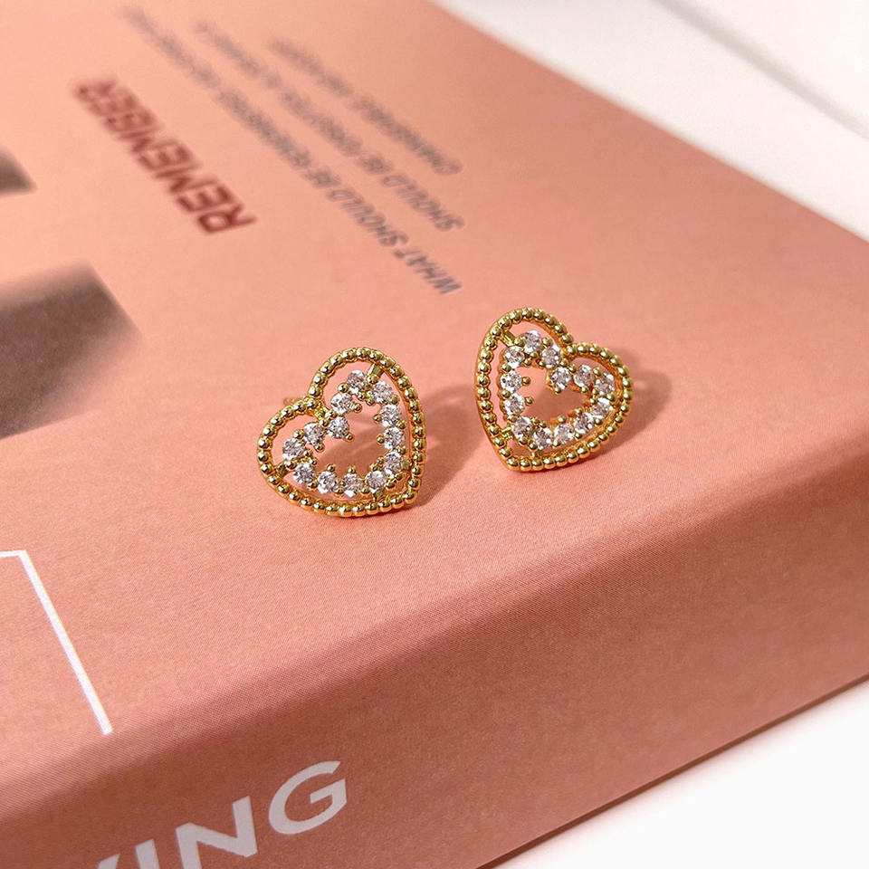 Trendy Cute Heart Shape Zircon Stud Earrings 18K Gold Plated Rhodium Plated Women's Jewelry for Weddings Parties Beautiful Gift