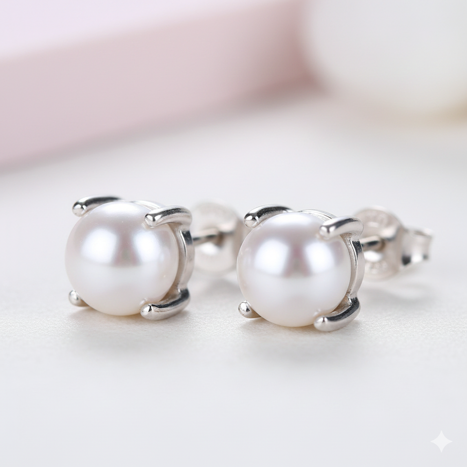 New Arrival Natural White Pearl 925 Sterling Silver Stud Earrings for Women Everyday Wear Small Earring Gift for Her