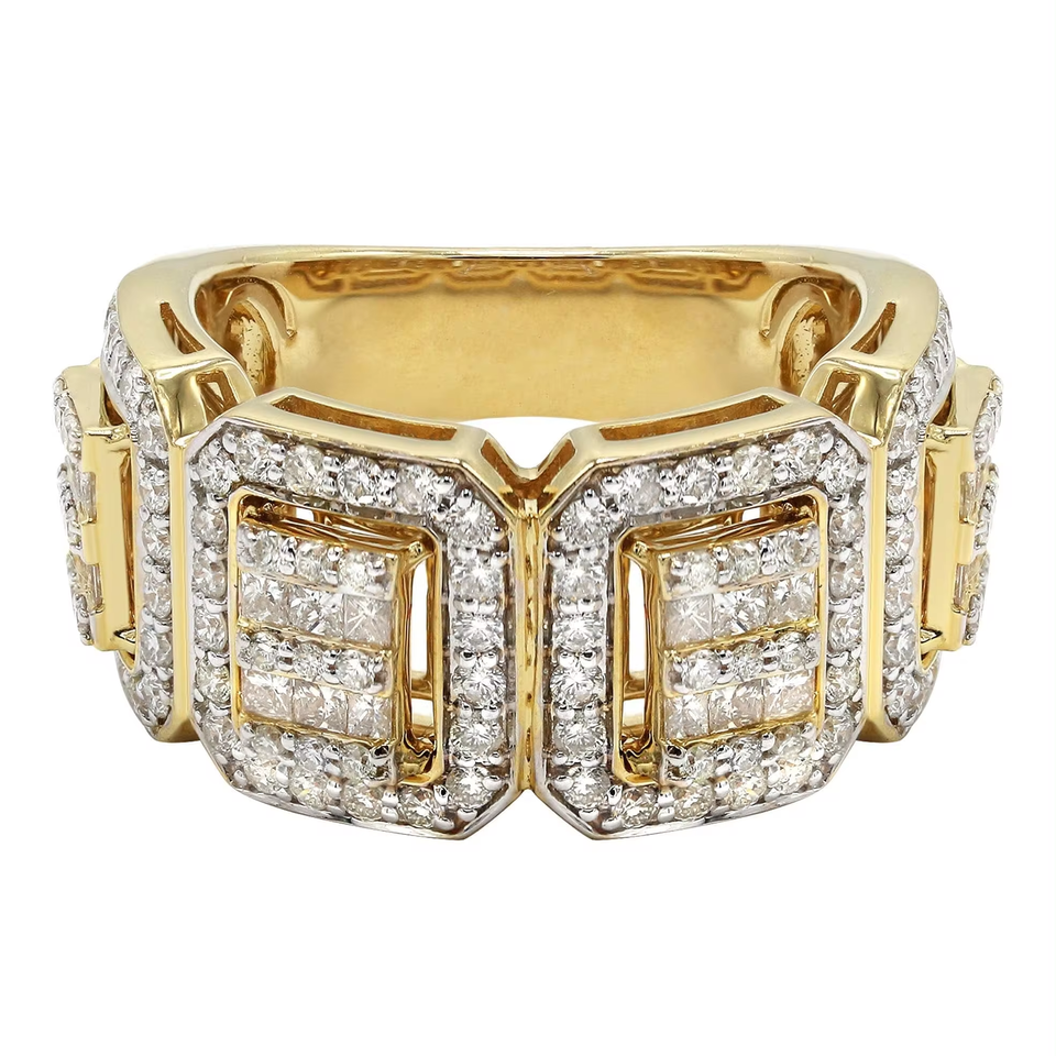 Trendy Hip Hop Ice Out VVS Natural 10K 14K 18K Gold Full Diamond Round and Princess Ring Luxury Custom Jewelry Men's Ring