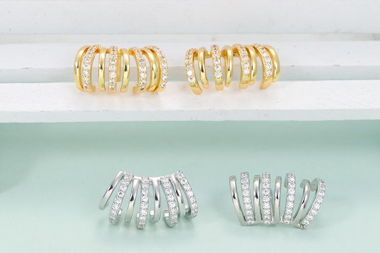 Trendy Hiphop Geometric Design Multi-layer Claw Shape Stud Earrings Brass 18K Gold Plated Zircon Piercing Women Girls Wholesale