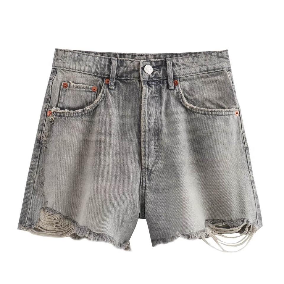 Trendy Hot Selling 2025 Spring Summer New Fashionable Versatile Vintage High Straight Denim Shorts Hole Burr Decoration Quick