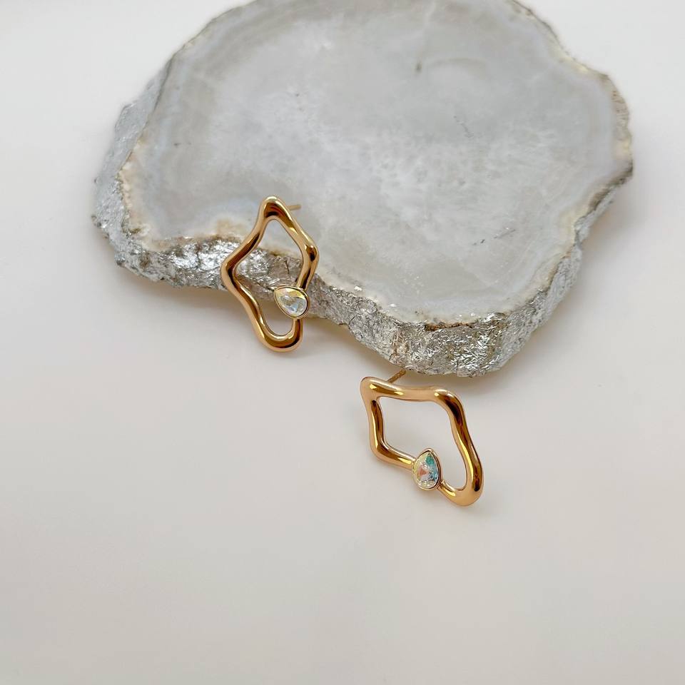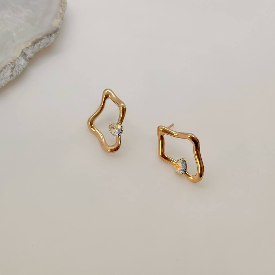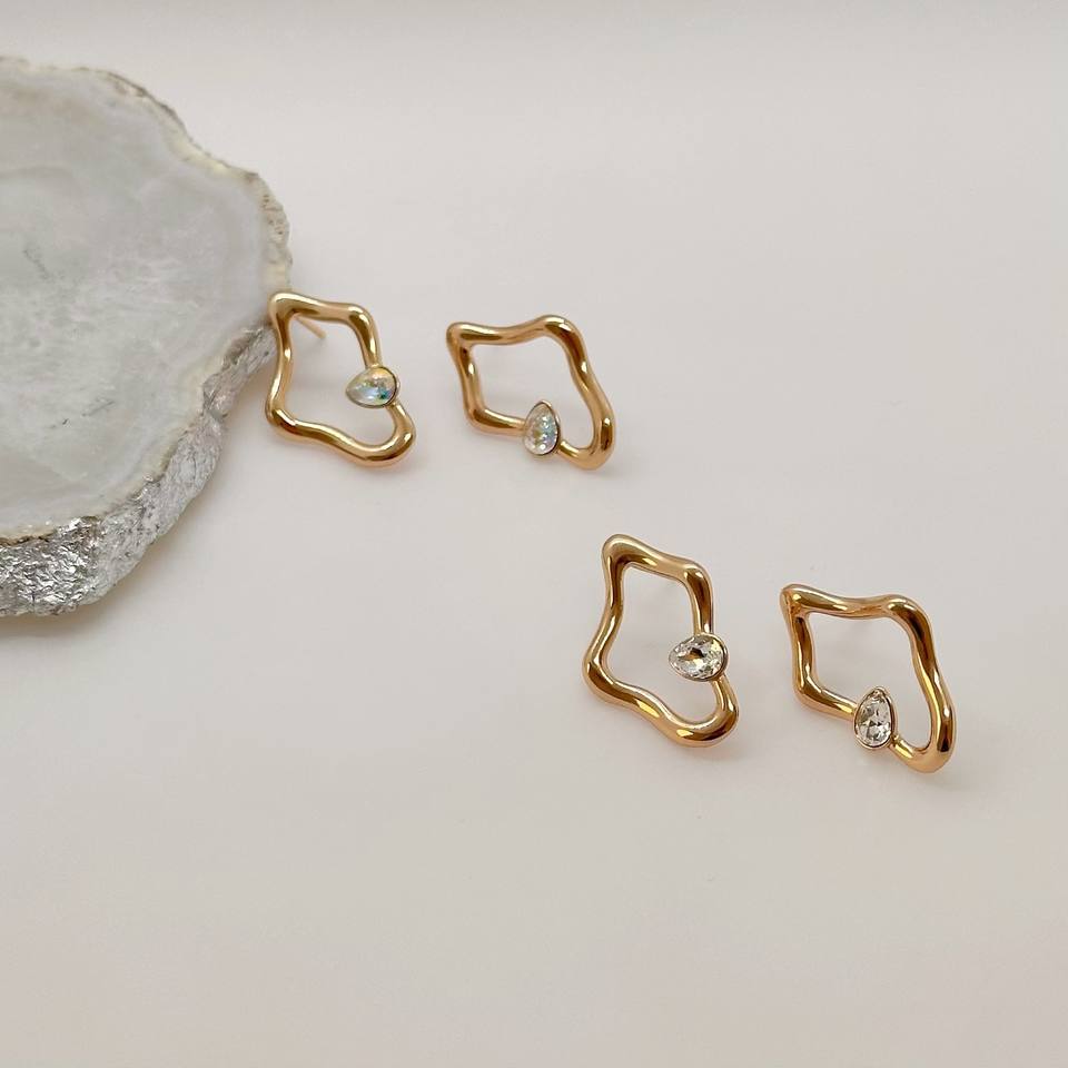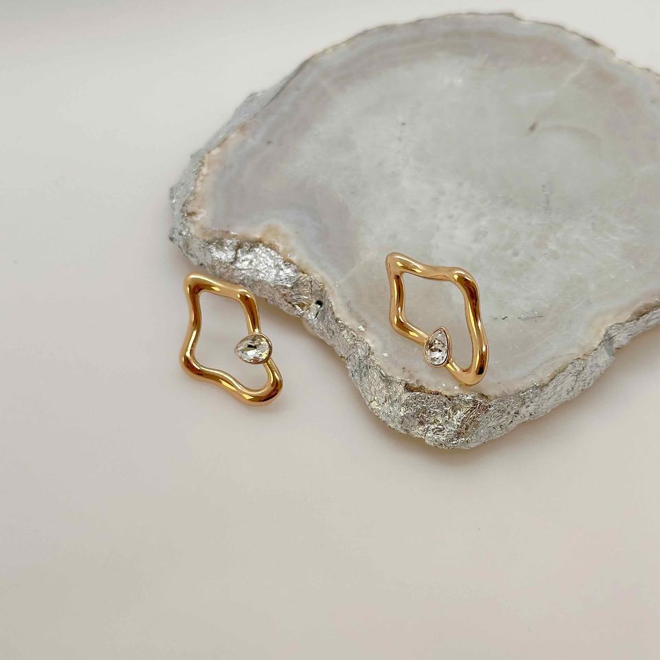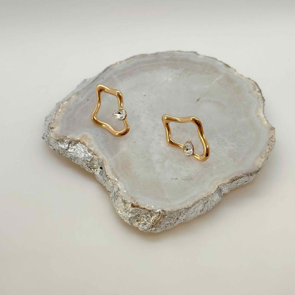 Trendy Irregular Geometric Earrings with Swarovski Crystals Gold Plated Brass