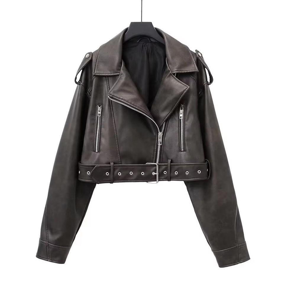 Trendy Jacket Long Sleeve Zipper Lapel Spring Autumn Clothing Leather Short Coat Motorcycle Clothing Leather Jacket for men's
