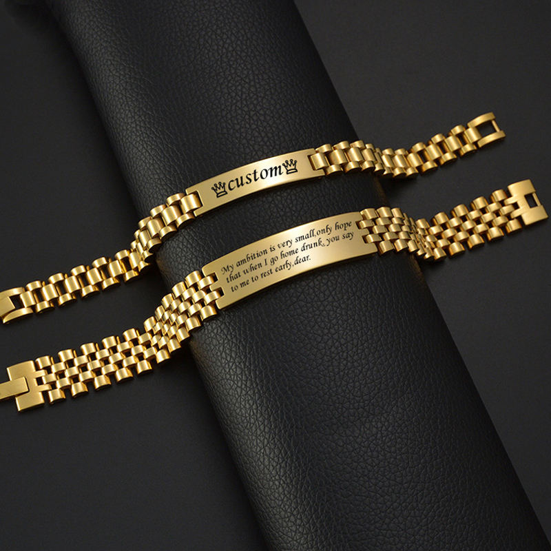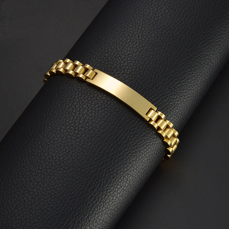 Trendy Jewelry 18K Gold Plated Stainless Steel Punk Watch Link Chain Blank Plate Bracelet for Men Women