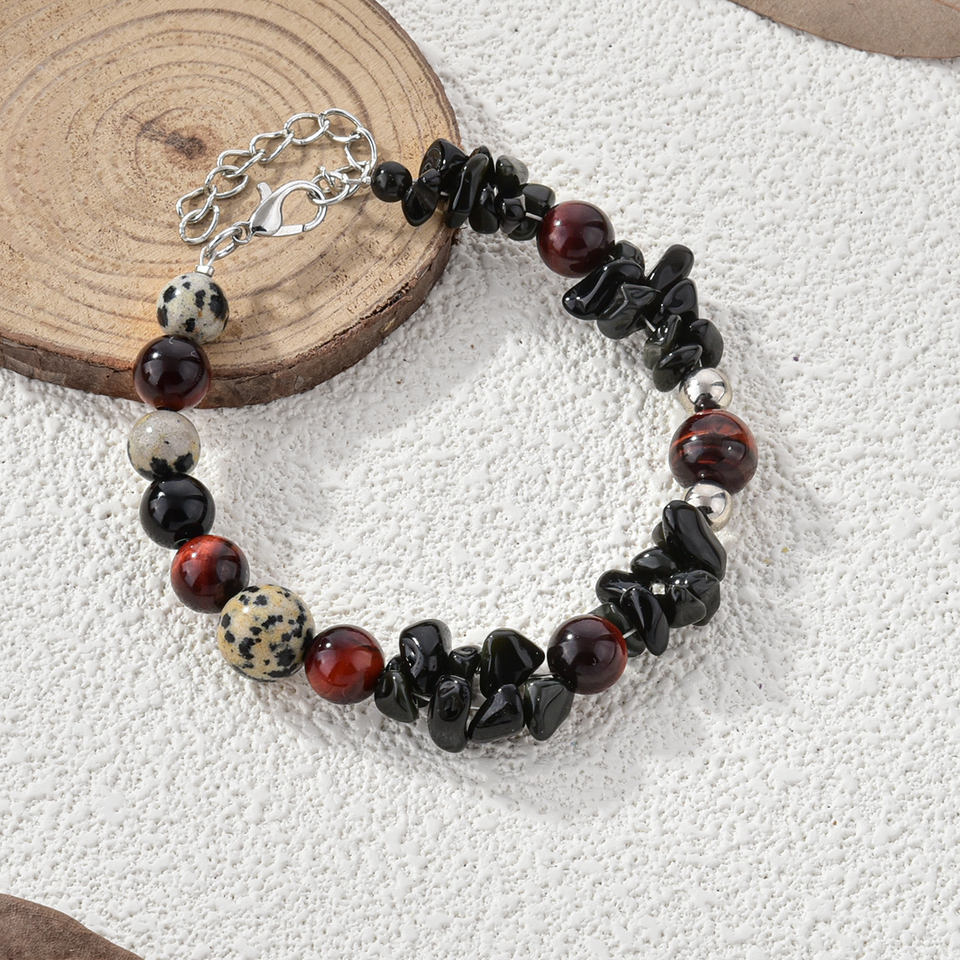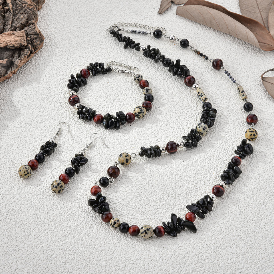 Trendy Casual Women's Jewelry Set with Black Obsidian & Red Agate Necklace/Earrings/Bracelet Everyday Wear Made China Zhejiang