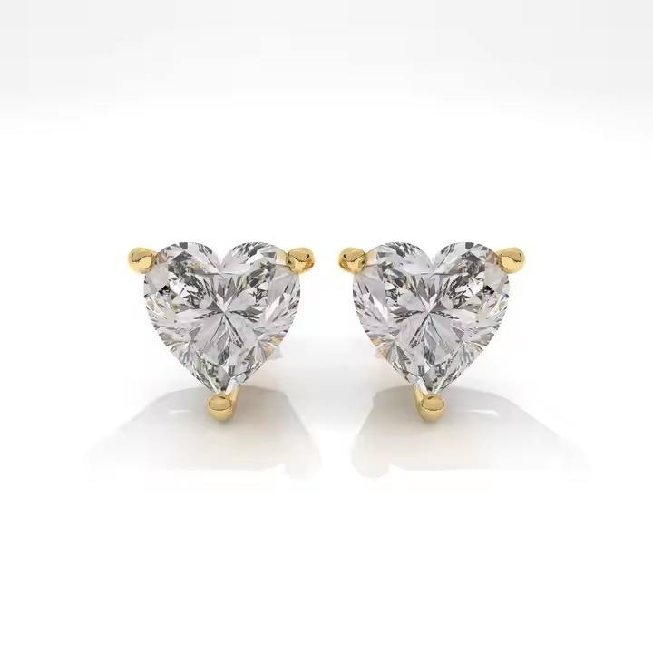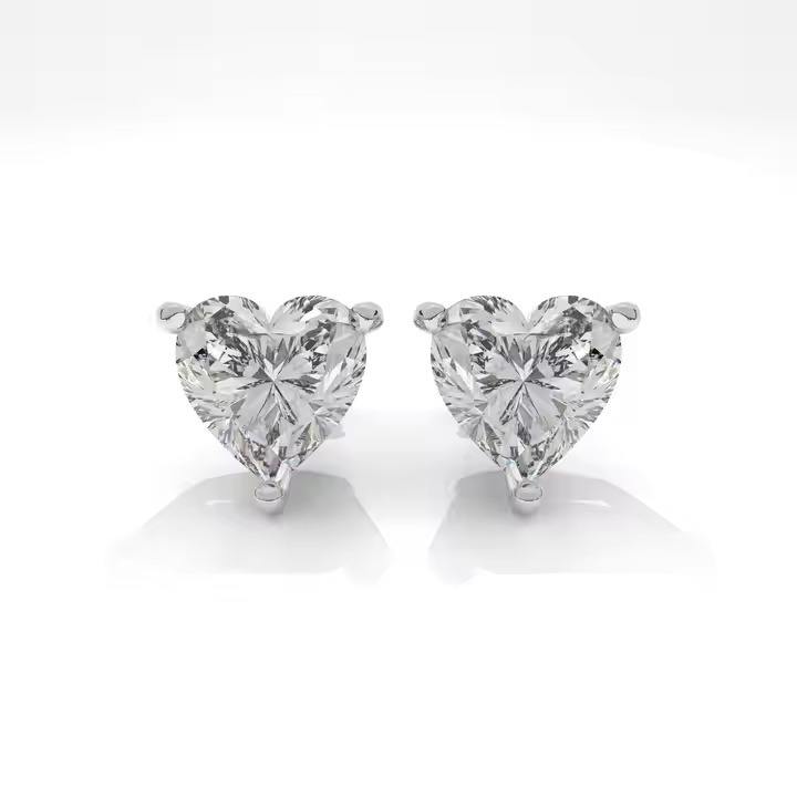 Trendy Lab Grown Diamond Stud Earrings in 10K White Gold with Heart Cut Fine Jewelry Diamonds Earring for Men Women