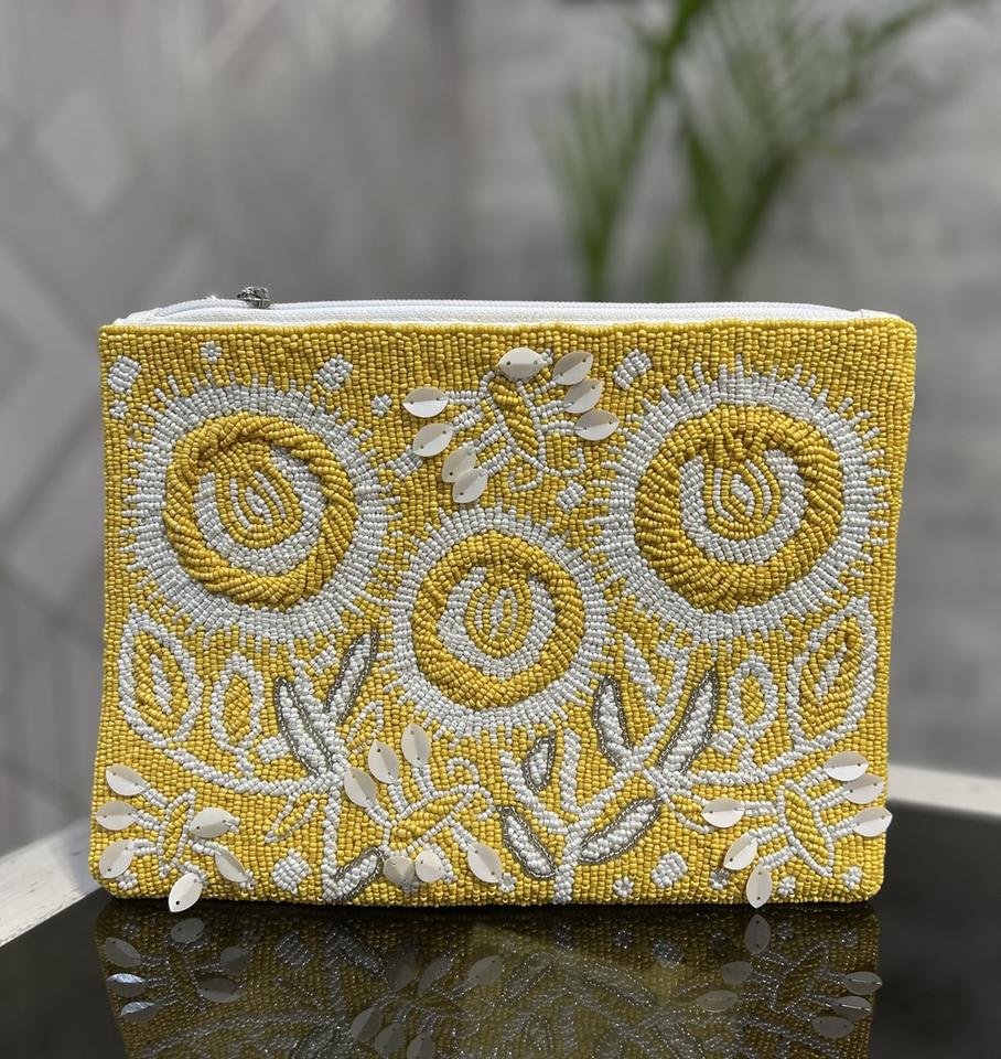 Trendy Ladies Large Capacity Game Day Handbag Multi Color Beaded Decorative Purse Waterproof Cotton Evening Bag