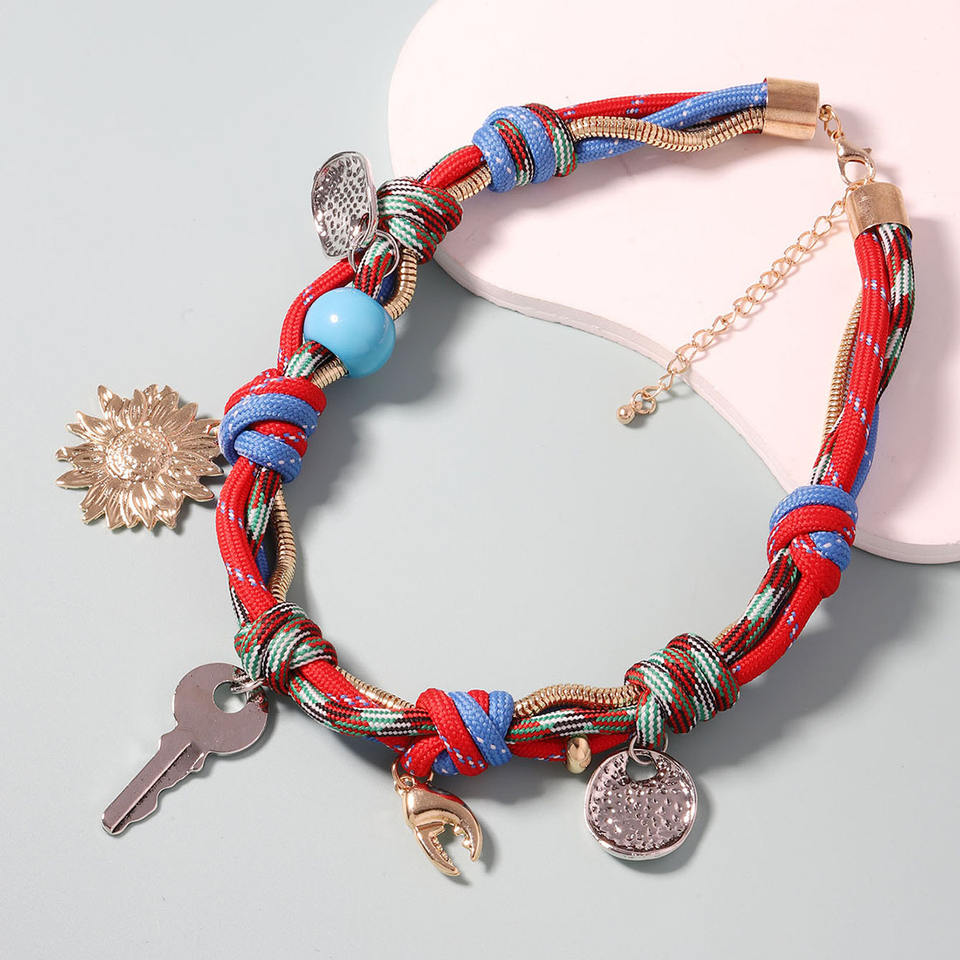 Trendy Light Luxury Retro Pleated Alloy Round Coin Multi-layer Leather Rope Necklace Casual Daily Women