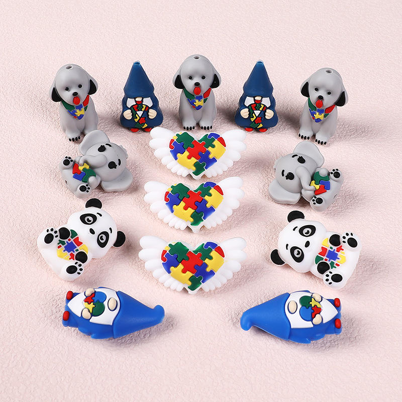 Trendy Lightweight DIY Jewelry Wholesale 3D Kids Decorative Colorful Loose Charms Silicone Beads For Bracelet Necklace Keychain