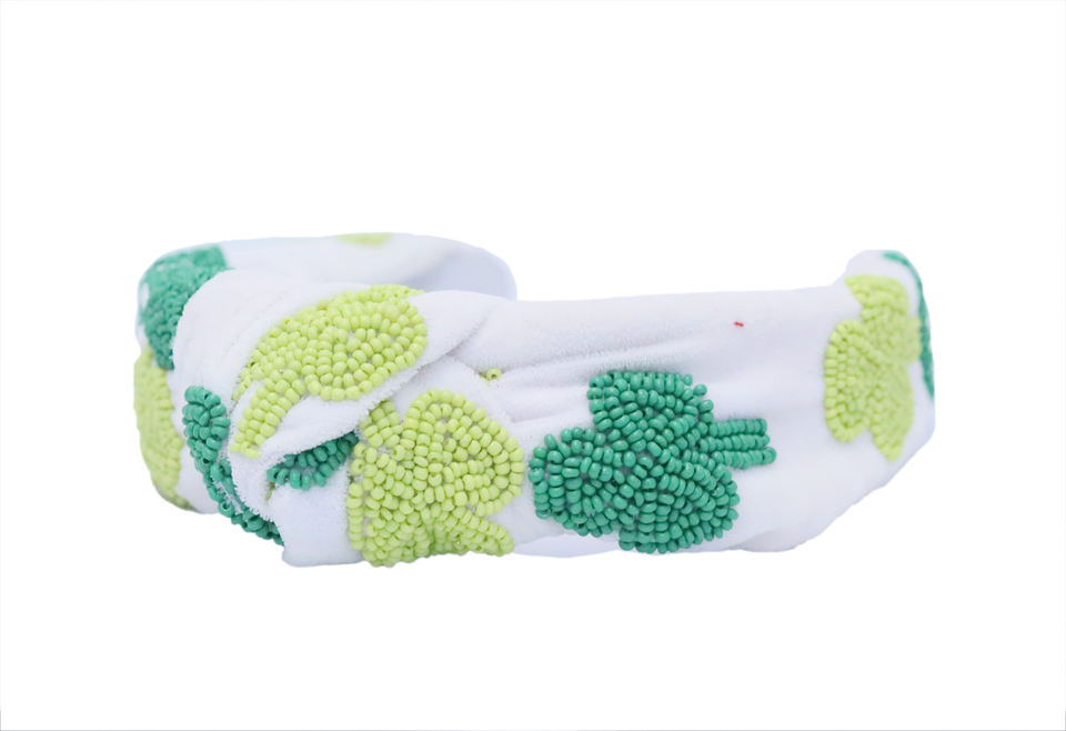 Trendy Lightweight Durable Handmade Shamrock Beaded Headband Green Bead Embroidery Knot Hairband St. Patricks Day Accessory