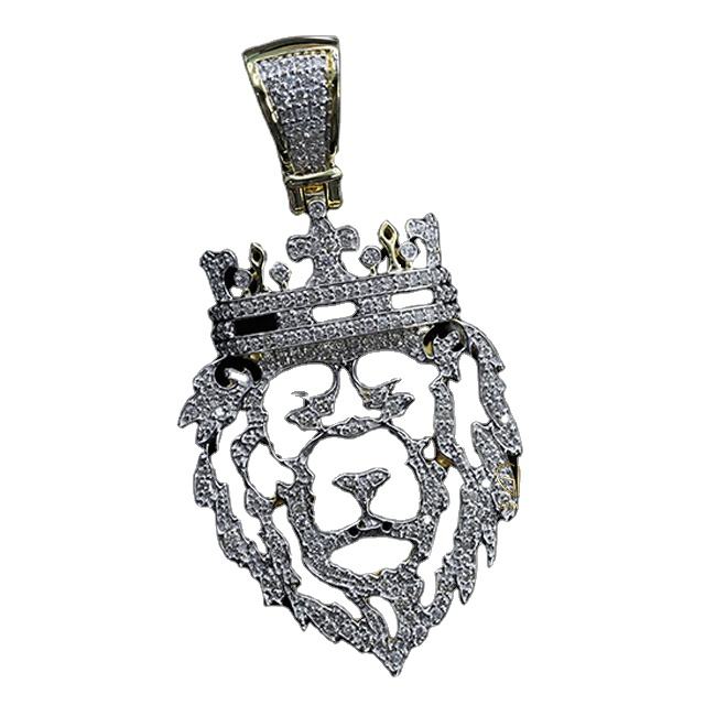 Trendy Luxury Fine Jewelry 925 Silver Round Cut Moissanite Diamond Pave Set Mens Animal Face Royal King Lion Crown Charm Pendant