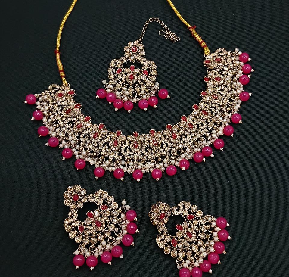Trendy Luxury New Shadow Choker Set With Earrings And Tikka With Stones And Pearl for Wedding Wear For Women Fashion Jewelry Set