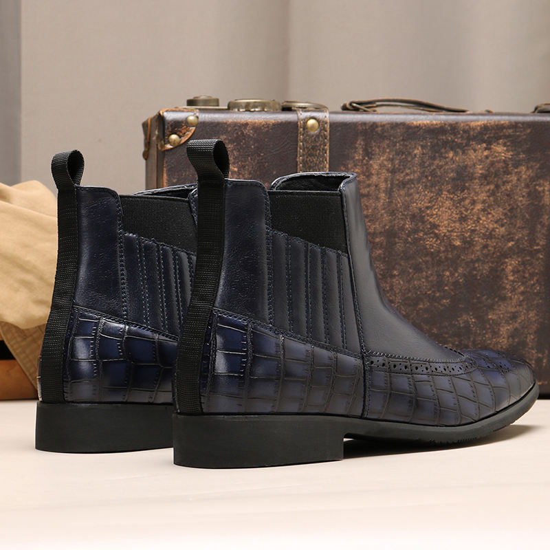 Trendy Luxury Western Chukka Chelsea Boots Genuine Pu Leather Breathable Ankle-Wear Men's Wear-Resistant Casual Winter