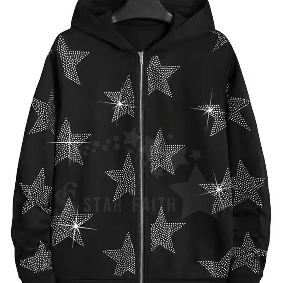 Trendy Men Basic Acid Wash Rhinestone Hoodie Cotton Blended Sparkly Streetwear Long Sleeve Pullover Top