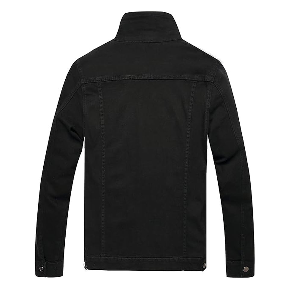Trendy Men Denim Jacket Casual Vintage Slim Fit Loose Fit Rugged Blue Black Light Wash Distressed Retro Streetwear Outerwear