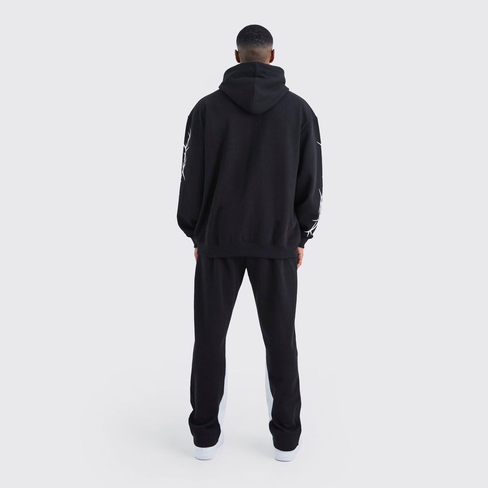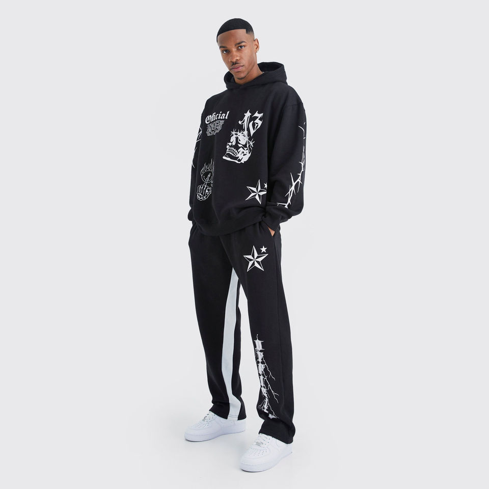 Trendy Men's 100% Cotton Flare Sweatsuit Customized Vintage Distress Applique Embroidered Hoodie Pants Printed Tracksuit Winter