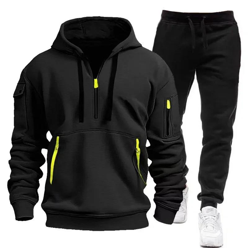 Trendy Men's Casual Warm Hoodie Set Luxury Tracksuit Outdoor Clothing TopSuit Streetwear 100% Cotton Solid S 4XL