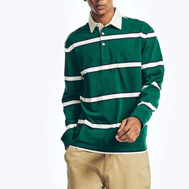Trendy Men's Rugby for Polo Shirts Personalized 100% Cotton Long Sleeved Spread Ribbed Breathable with Embroidered Technics