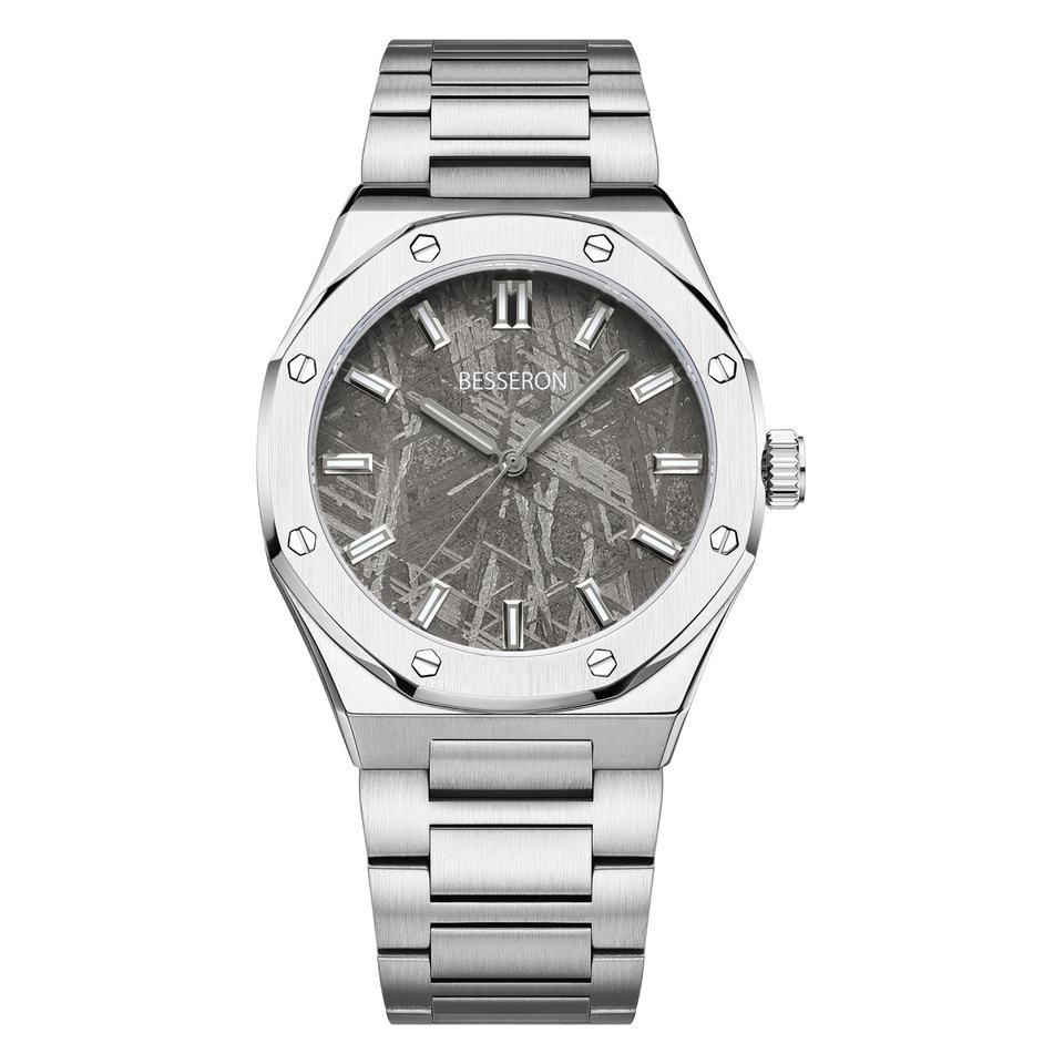 Trendy Men's Skeleton Automatic Watch Luxury Stainless Steel Mechanical Meteorite Stone Dial Space Plating Water Resistant