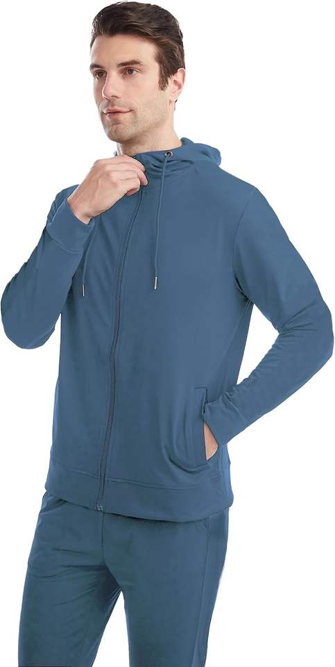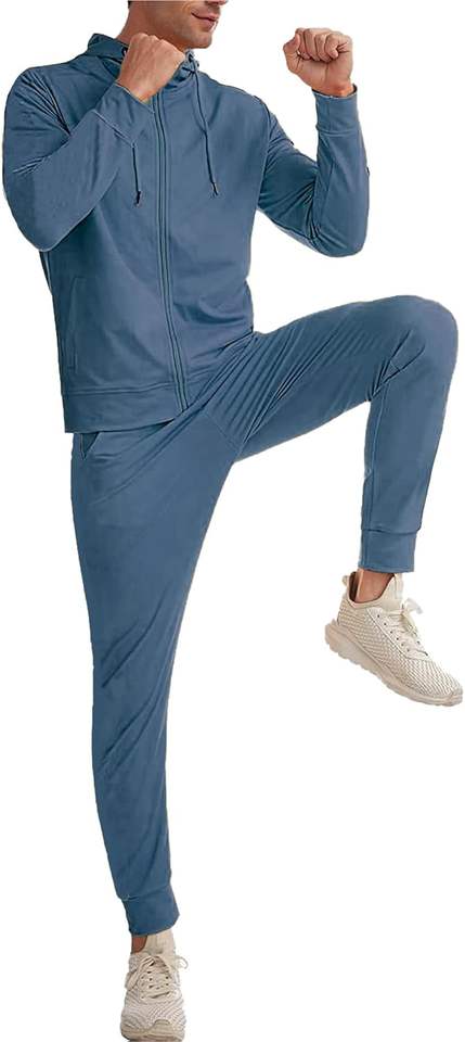 Trendy Men's Two-Piece Solid Pattern Zip Hoodie and Slim Fit Joggers for Gym Sport Fashion Streetwear in Winter