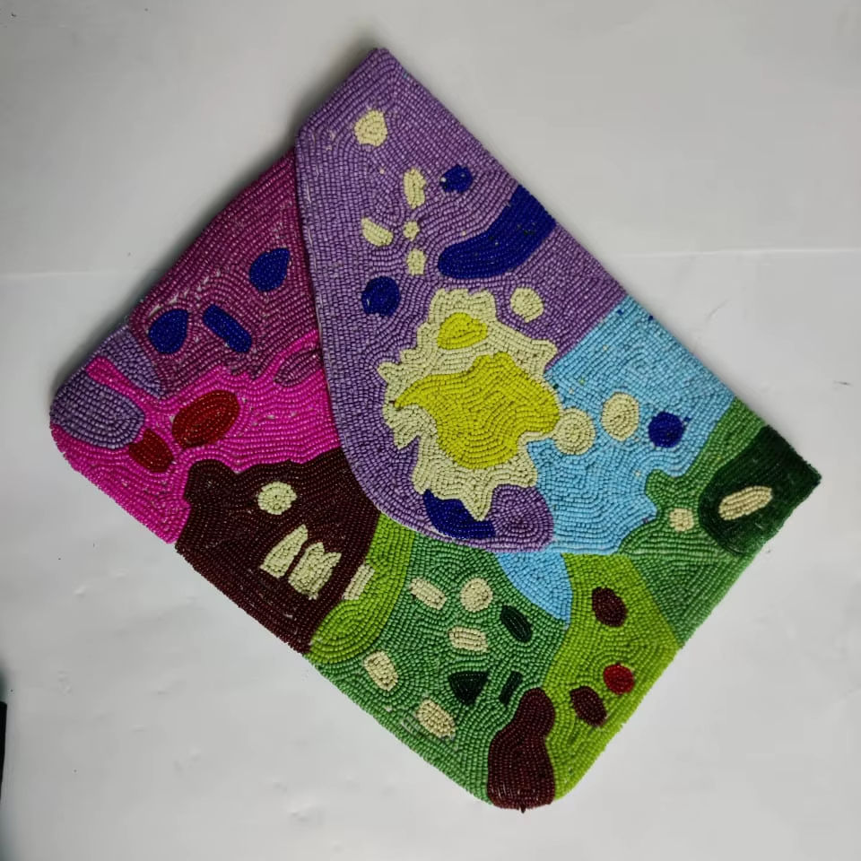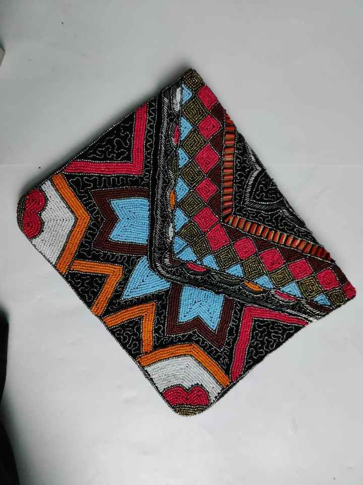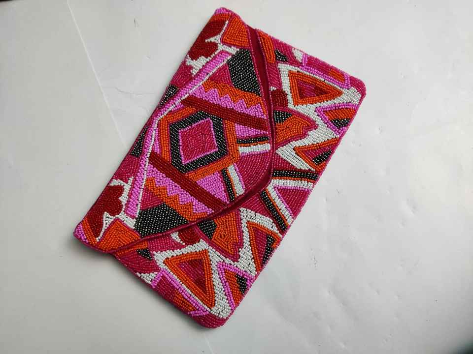 Trendy Multicoloured Embroidery Clutch With Stone Work Imitation Pearl Vintage Butterfly Solid Complete Set Link Chain Charm Bag