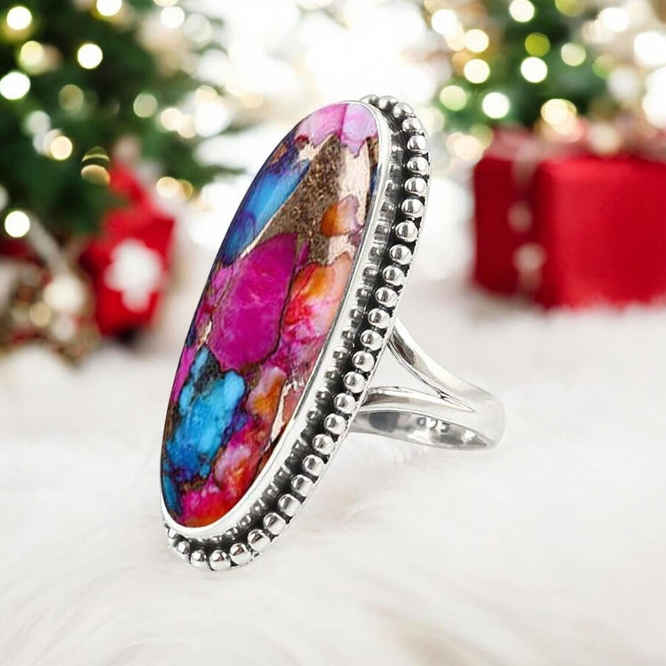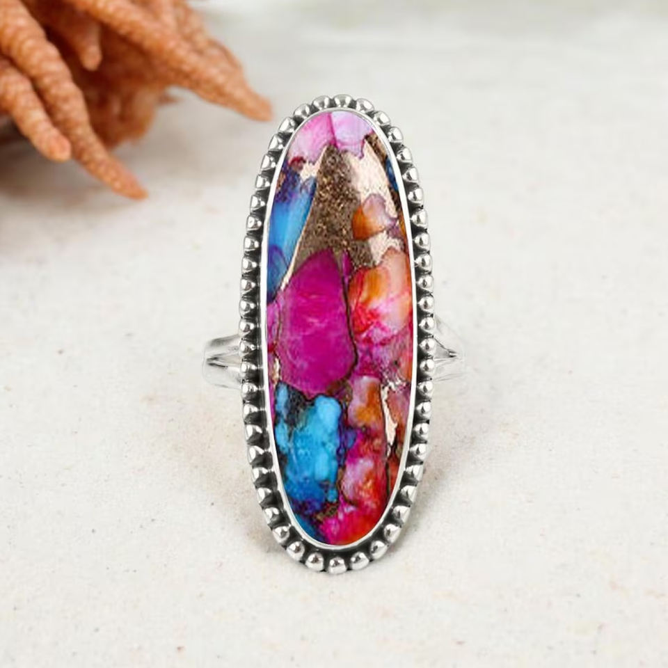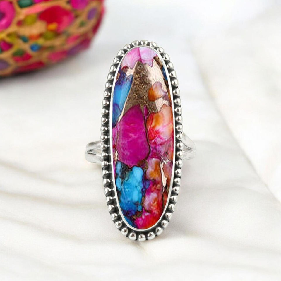 Trendy Natural Orange Dahlia Copper Turquoise Ring 925 Sterling Silver Bohemian Navajo Jewelry Handmade Gemstone Statement Gifts