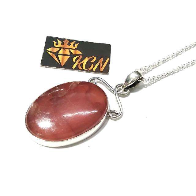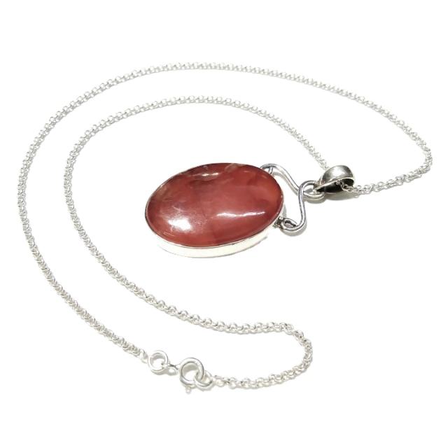Trendy Natural Rhodochrosite Gemstone Oval Cute Charm Pendant Chain 925 Sterling Silver Necklace Handmade Jewelry for Women &Men