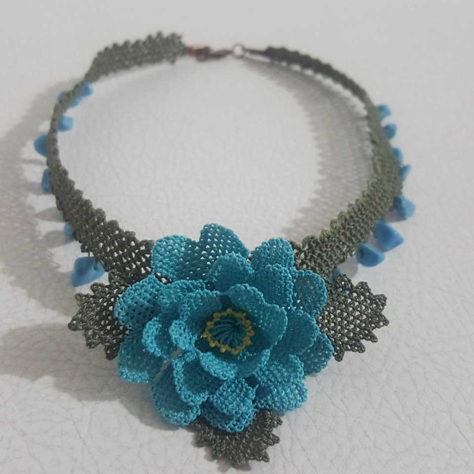 Trendy Needle Lace Crystal Rose Necklace with Turquoise Jade Agate & Opal Snowflake Rope Chain for Party Engagement or Gift