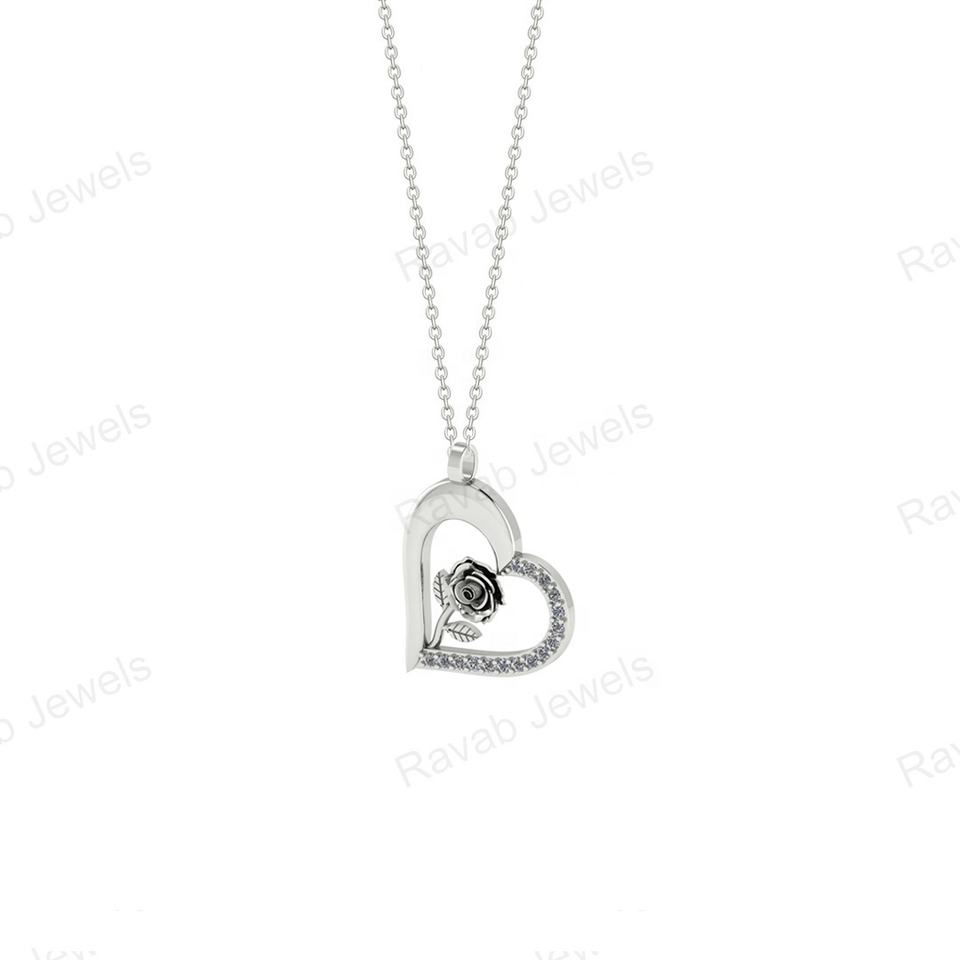 Trendy Newest Heart Rose Flower Pendant Carved I Love You Forever Zircon Necklace Women Custom Jewelry for Valentine Day Gift
