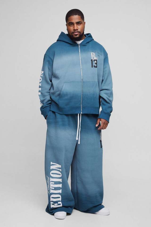 Trendy Oversized Hoodie Sweatpants Jogger Set Cargo Pant Tracksuit Zip Thru Official Spray Wash Hooded & Plus Size Boxy Style
