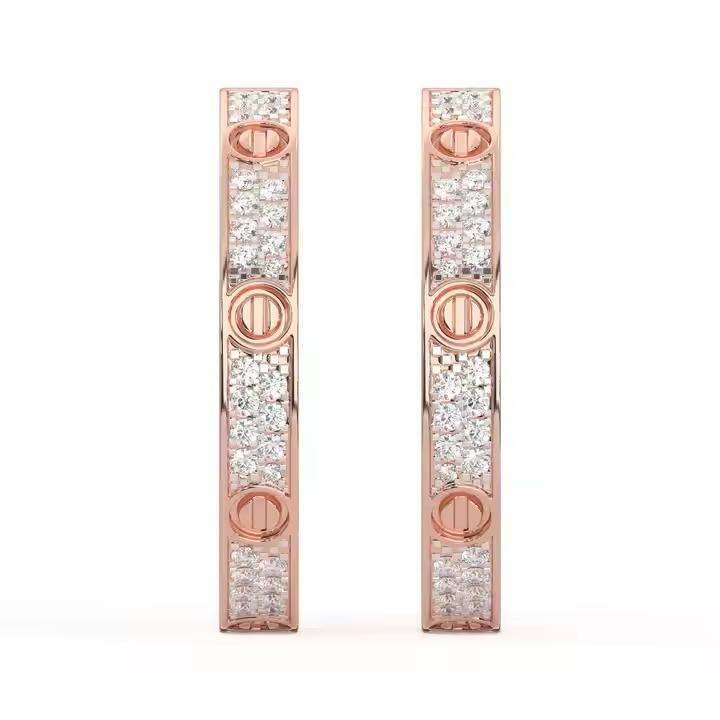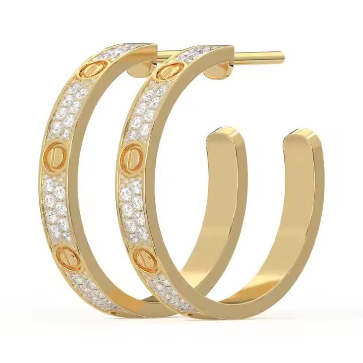 Trendy Party Wear Circle Hoop Earrings 10K Yellow Gold with Lab Grown Round Diamond Stylish Earpiece Gift for Women
