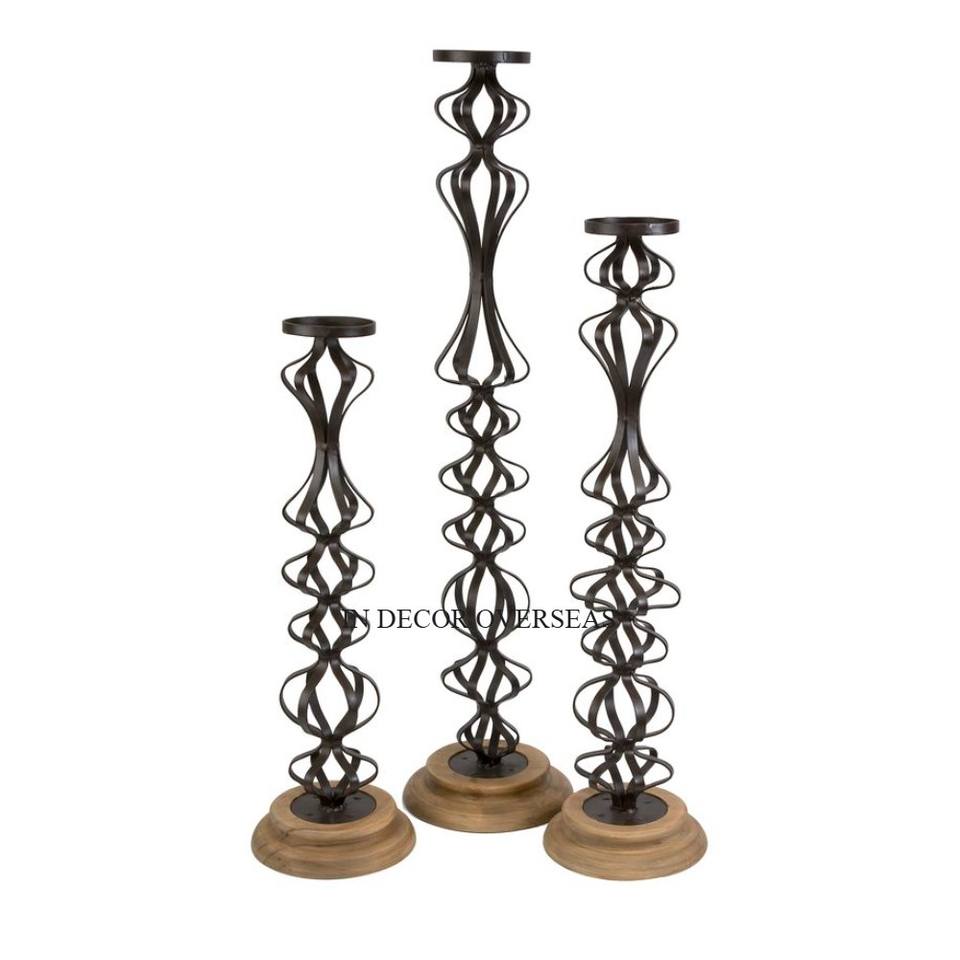 Trendy Pattern Arrival Black Color Powder Coated Stylish Designer Heavy Duty Metal Candle Holder With Wooden Base From India