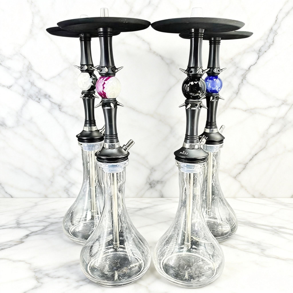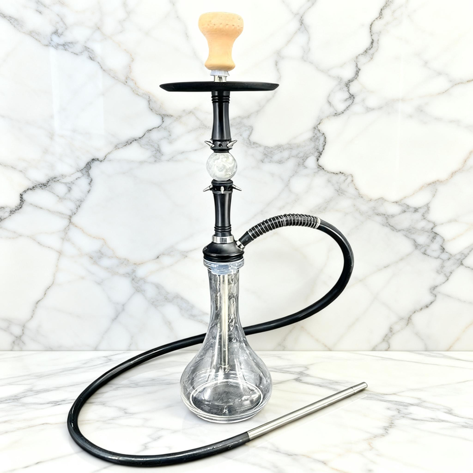 Trendy Personalized Shisha Pipe - Pink-White/Black/Blue Beads & Black Tube & Clear Glass for Lounge Leisure