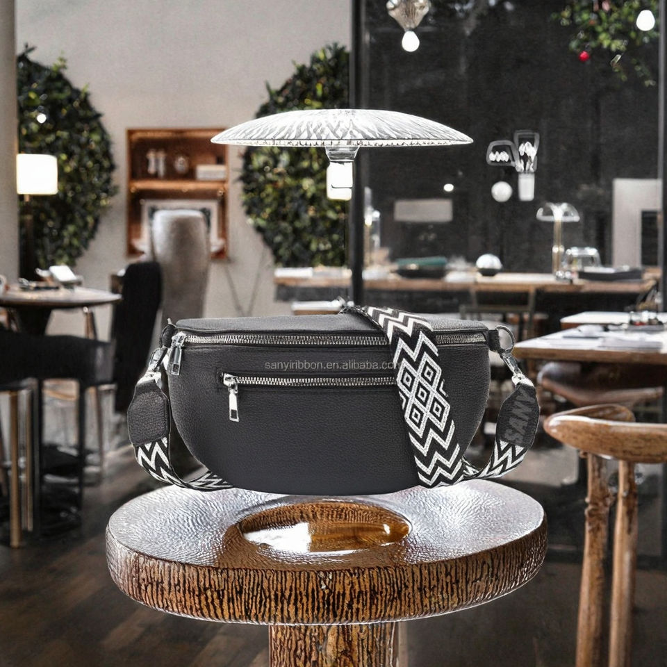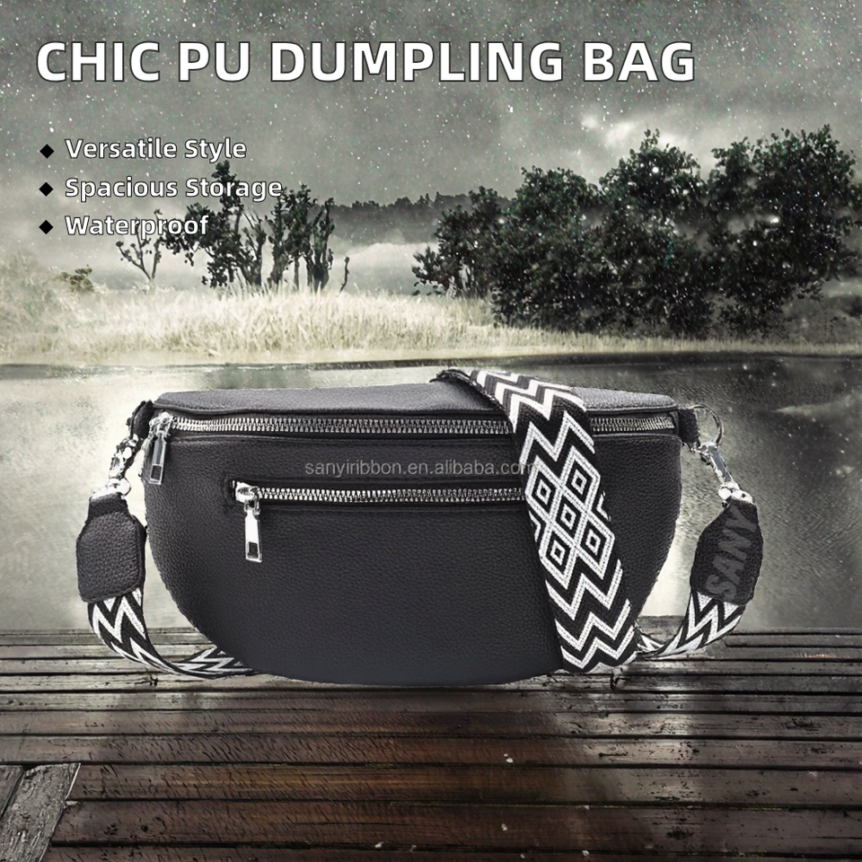 Trendy Practical Casual Design Ladys Dumpling Messenger Bag Fine-Grain PU Leather Three-zipper Cloud-Woven Wide Shoulder Strap