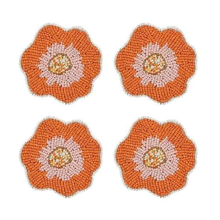 Trendy Premium Embroidery Floral Four Set Beaded Coaster Featuring Latest Luxury Customizing And Cute Seed Bead For Girls