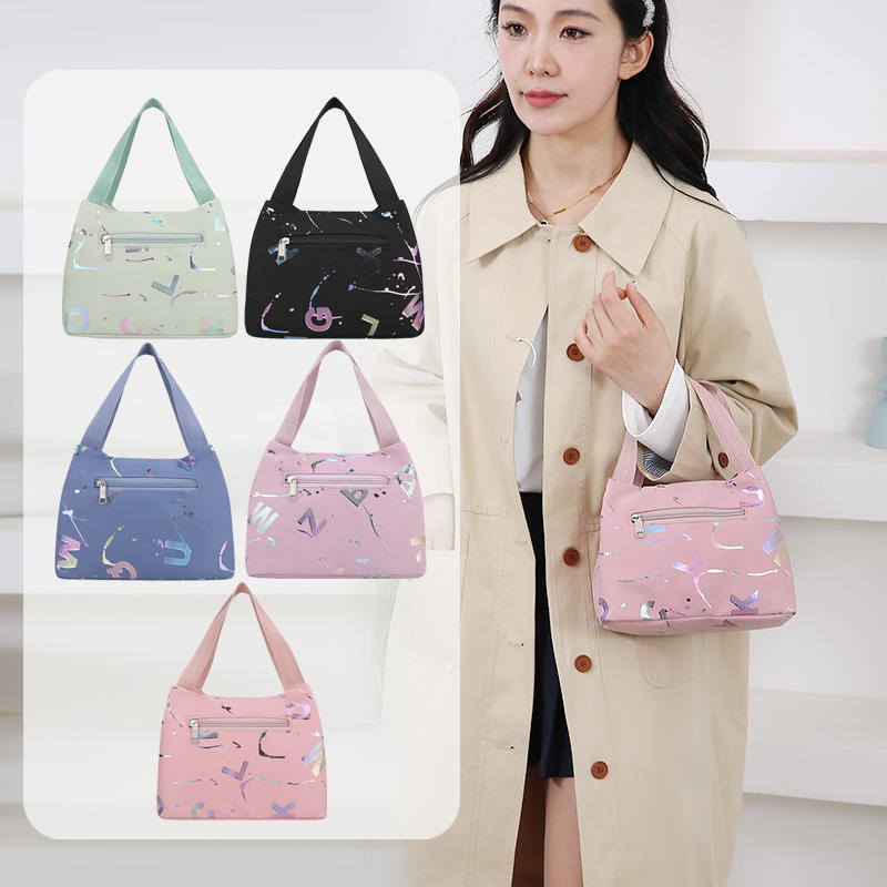 Trendy Printed Women's Tote Bag Horizontal Square Zipper Closure Portable Fashion Design For Everyday Use Spring 2025