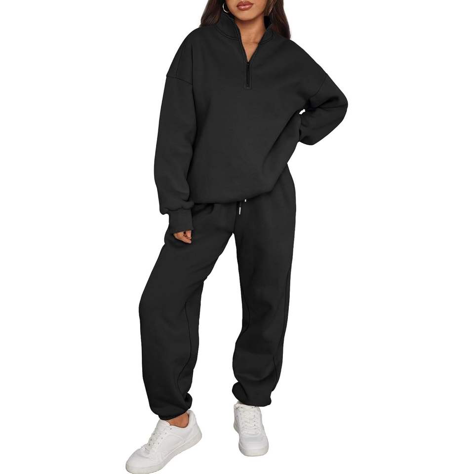 Trendy Queen Womens 2-Piece Outfits Long Sleeve Half Zip Sweatshirts Fleece Joggers Sweatpants Queen Size 2 Piece Outfit