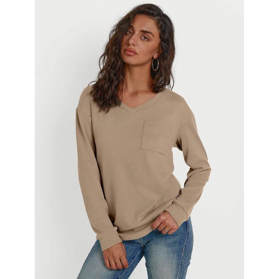 Trendy Queen Womens Long Sleeve Casual Shirts with V Neck and Pocket Fall Fashion Outdoor Tops