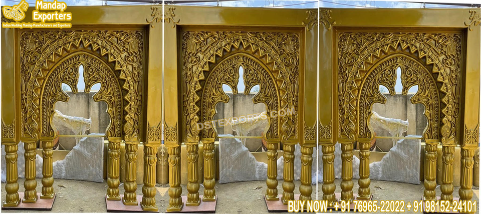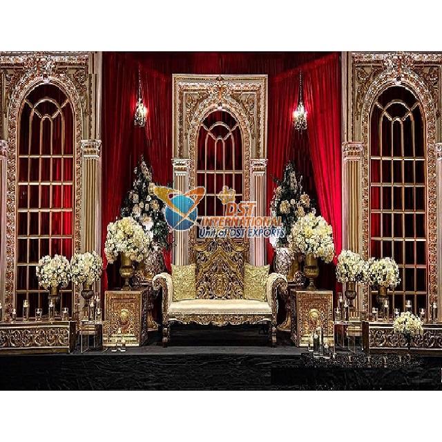 Trendy Rajwada Theme Window Frames Classy Grand Wedding Stage Backdrop Stylish Window Frames for Wedding Decorations