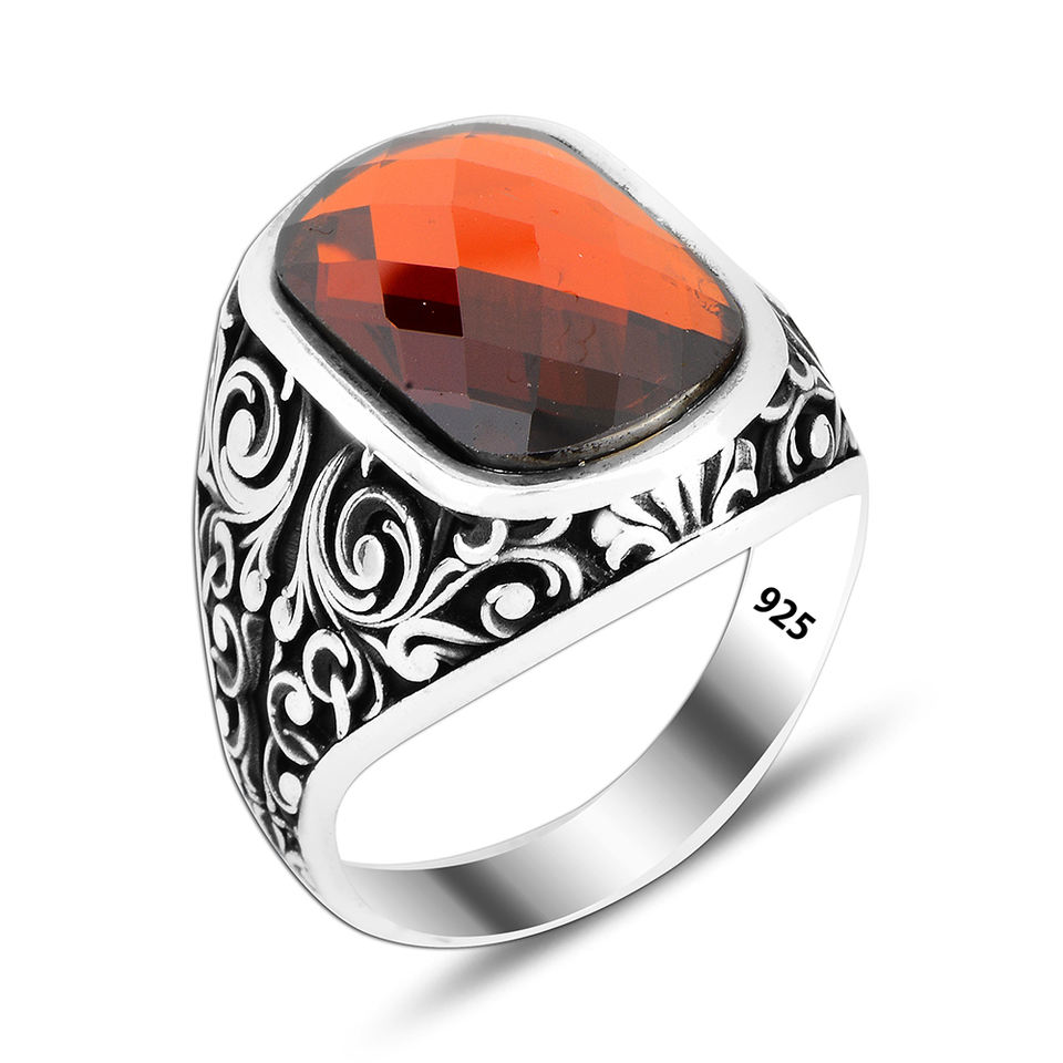 Trendy Red Stone Men Ring 925 Silver Jewelry Wholesale Silver Ring for Men New Art Design Vintage Fine Jewelry Rings Hot Sale
