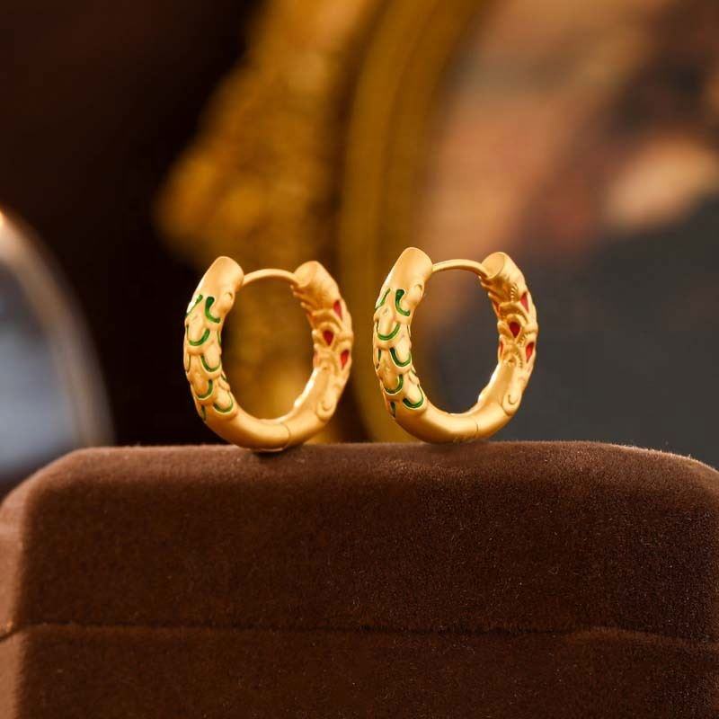 Trendy Retro Gold Geometric Asian Stud Earrings Women High-End French Luxury Drip Oil Effect Versatile Gift Fashion Accessory