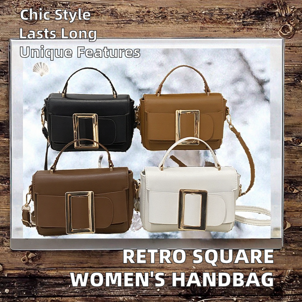 Trendy Retro Small Square Women's Handbag Genuine Leather Lining Fashionable Summer Winter and Autumn Shoulder Bag