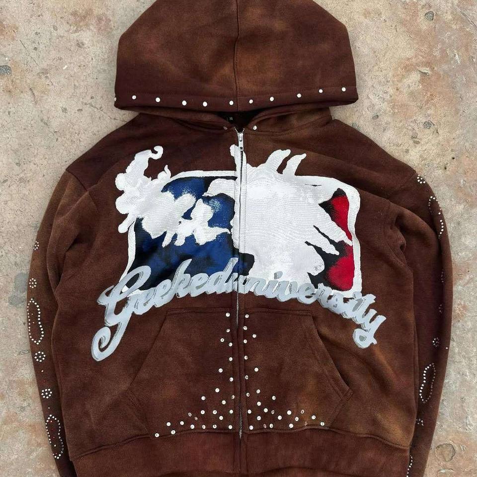 Trendy Winter Unisex Rhinestone Fleece Pullover Hoodie for Men Women-Wholesale Luxury Sweatshirt