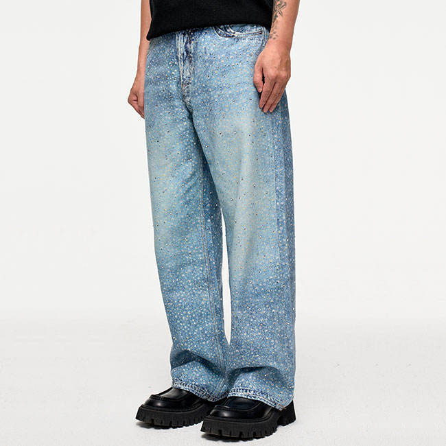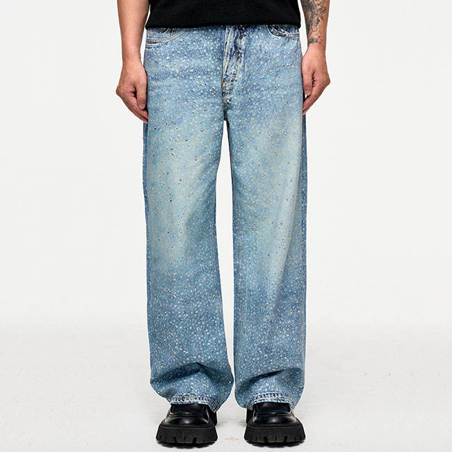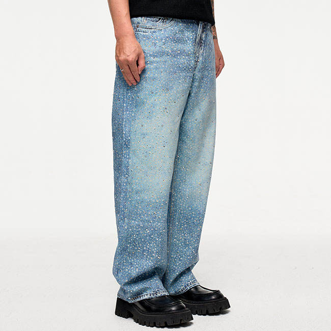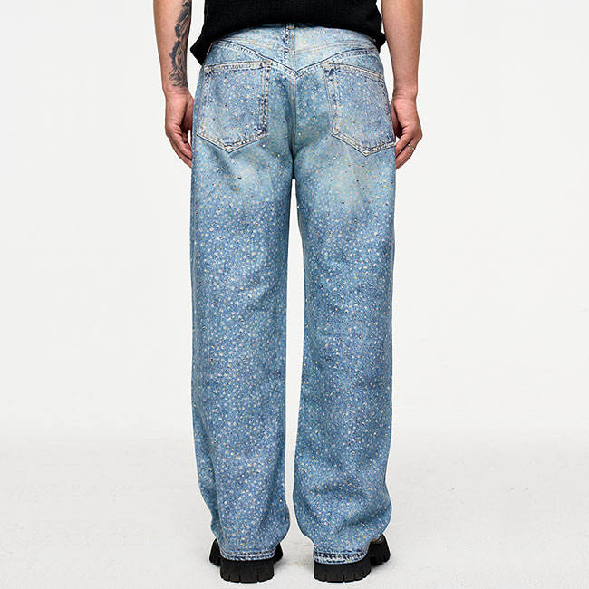 Trendy Rhinestones baggy Men's Jeans Pants New Design Hip Hop High Street Style Waterproof Spring Denim Casual Denim Jeans
