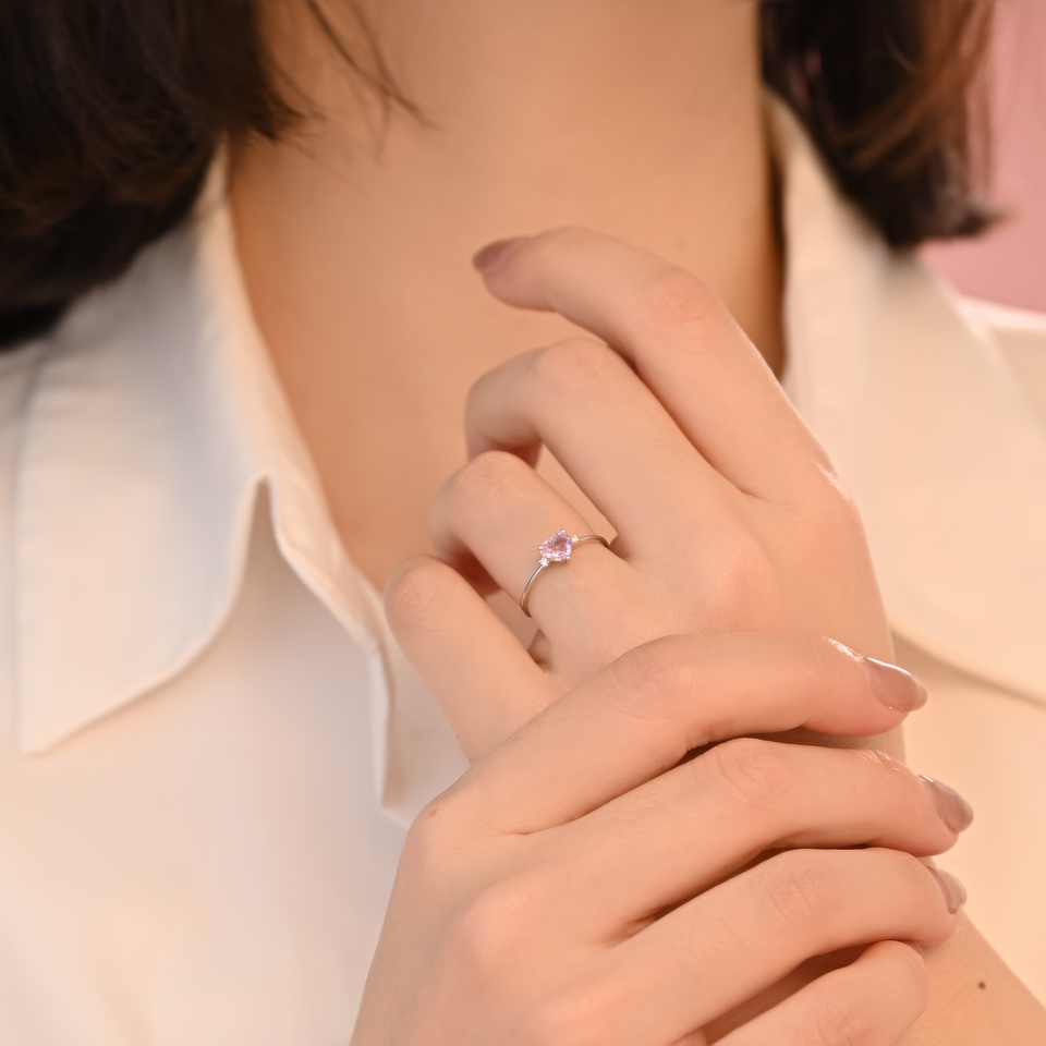 Trendy Romantic Elegant Fine Jewelry Solitaire Diamond Ring 18K Solid White Gold Real Natural Pink Sapphire Ring for Girls