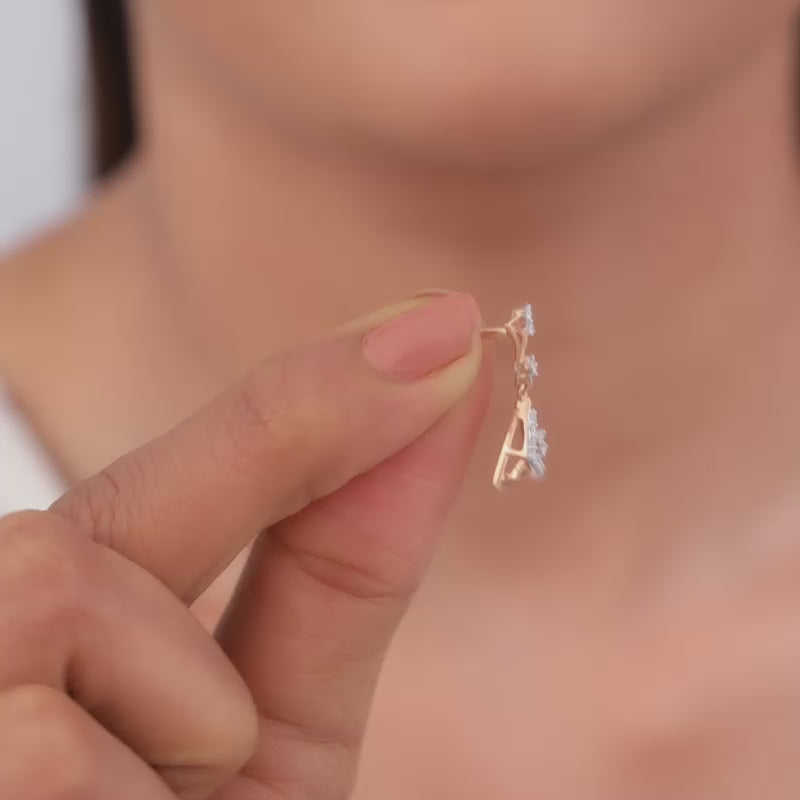Stylish Rose Gold Ternion Dangler Earrings with Diamond Pearl Drop & Hoop Design for Wedding Party Ball Pattern Platinum Jewelry