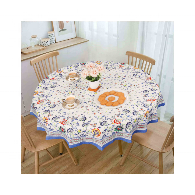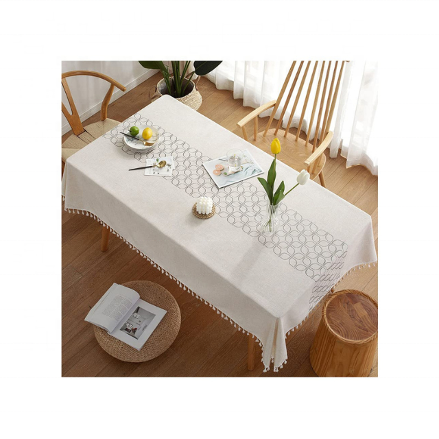 Trendy Round Embroidered Tablecloth 100% Cotton 60x84 Inches Soft Fabric Perfect for Modern Homes Offering Timeless Elegance