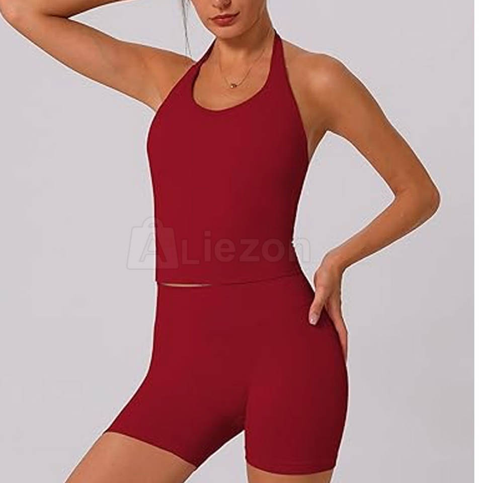 Trendy Seamless Women Yoga Top And Shorts Set For Workout Women Yoga Top And Shorts Gym Outfit