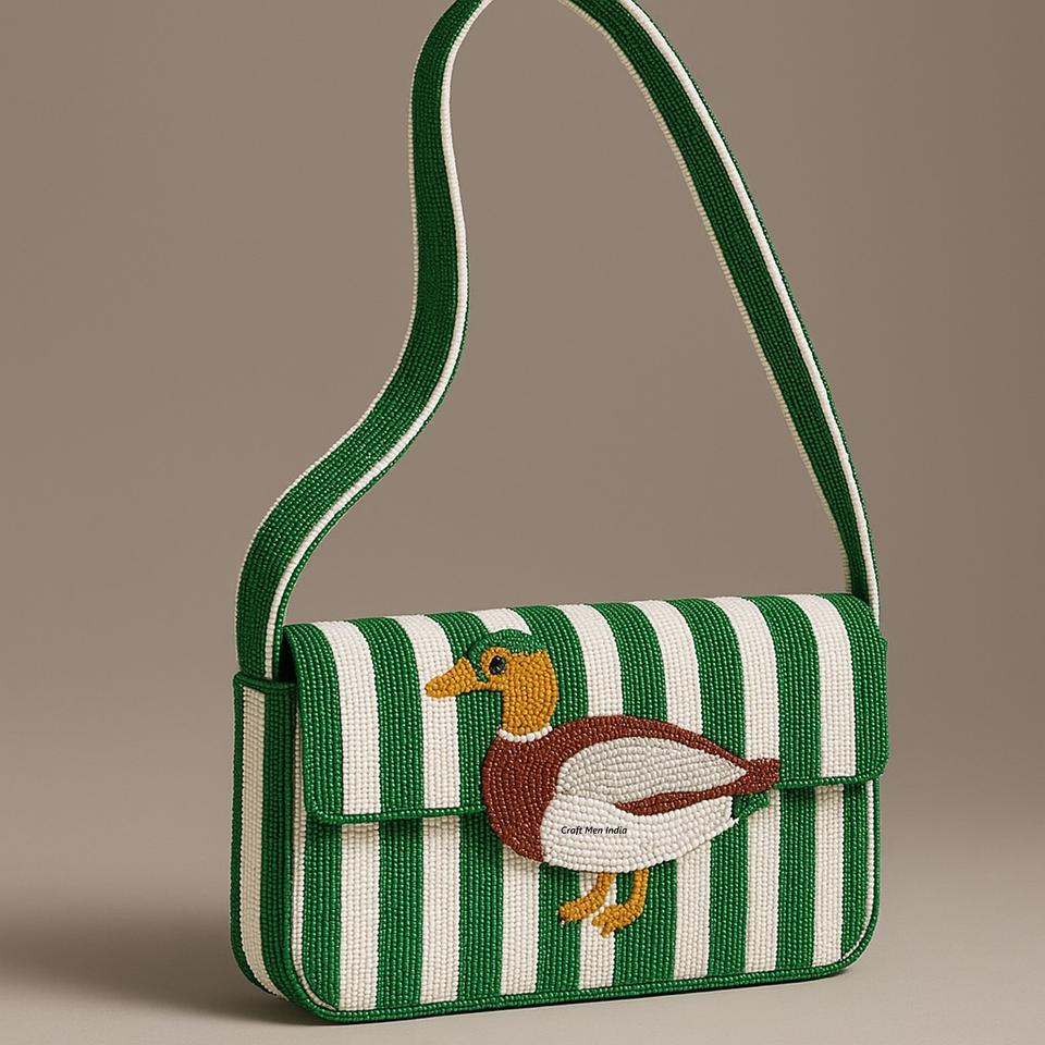 Trendy Seed Beads Floral Embroidery Handbag with Adjustable Handle Pearl Bow Custom Pattern Portable